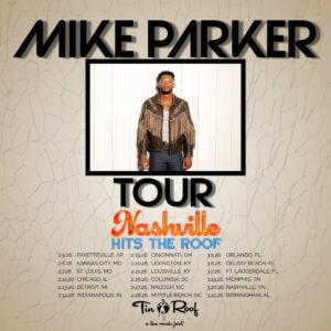 Mike Parker is a country artist from Virginia. His storytelling delivery combined with his distinctive and emotive vocals blend his R&B roots with his country musical direction. Mike gained a loyal fan base and extensive performing experience while competing in the 20th season of American Idol, where he made it through to the Top 10. He has since moved to Nashville, TN and is working with hitmaker Jimmy Robbins and Mailbox Money Records to release music. He is signed to Withrow Street Music and CTM Entertainment for publishing. Mike was a CMT “Next Up Now” featured artist, had a music video on a four-week CMT channel rotation, was featured on the cover of Spotify’s Fresh Finds Country playlist for several week, and was included in the Best Of Fresh Finds Country end-of-year playlist for 2024 and 2025. Mike is currently working on his debut album slated to come out this year. Catch him on the road across the Southeast during the Tin Roof Nashville Hits the Roof tour series in February through March 2026.